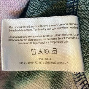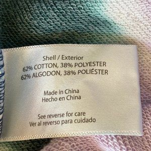 -tie dye sunburst-like pattern on left side-visible on front and back