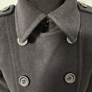 London Fog Heritage Black Wool Blend Trench Coat with Leather Accents