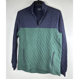 J. Crew Quilted Half Zip Pullover Colorblock BT355 Navy Blue Green Men's Medium