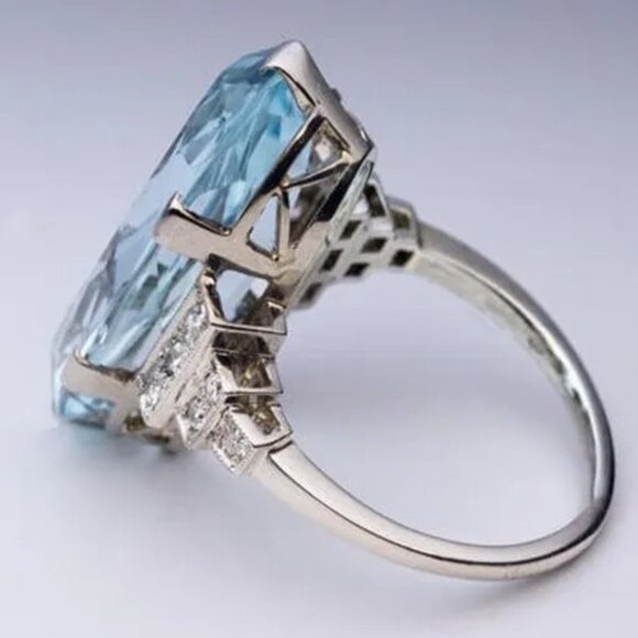 Vintage Art Deco Retro Silver Simulated Sapphire Ring Size 7 NWOT
