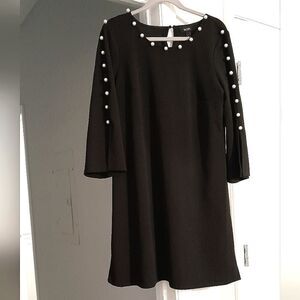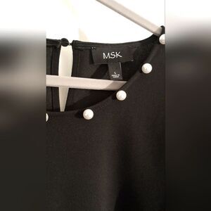 MSK Petite Shift Dress Statement Pearl Round Neck Black Sheath Size Large