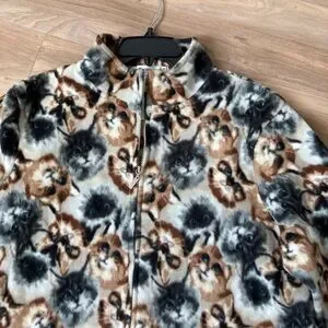 Relist11/25 cat print fleece zip shirt jacket cat animal print size XL