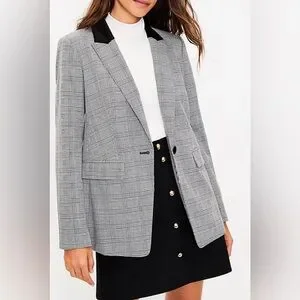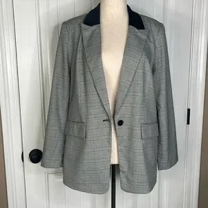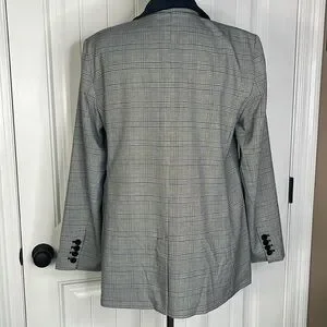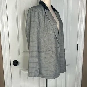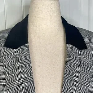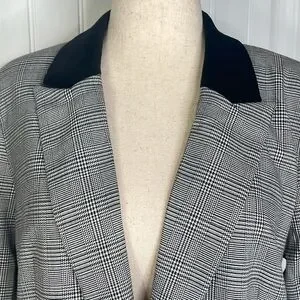 Tall Plaid Velvet Collar Long Modern Blazer Sz 14