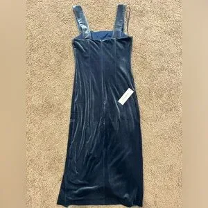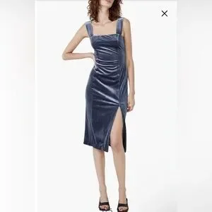 New Bardot Amalie velour midi dress in blue