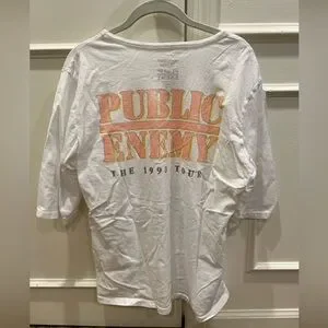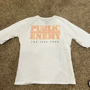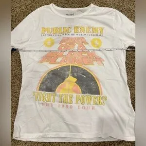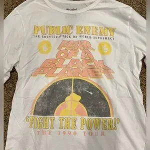 Recycled Karma white t-shirt featuring Public Enemy Fear of a Black Planet Fight the Power 1990 World Tour.