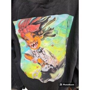 This Trippie Redd black hoodie is the perfect addition to any rap fan's wardrobe. Featuring the artist's name on the front and a love letter to you on the back, this hoodie is a must-have for fans of the genre. Made in China and available in size XL, this original piece is sure to turn heads. Whether you're looking to show off your love for Trippie Redd or just want a stylish addition to your wardrobe, this hoodie is the perfect choice. With its black color and bold design, it's sure to make a statement wherever you go. Don't miss out on this one-of-a-kind piece! CLOTHING AND FABRIC ITEMS: All clothing and fabric items have been steam cleaned and/or washed.
