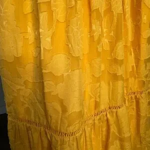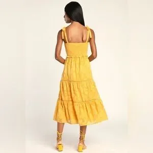 Lulu’s Love Yellow Jacquard Smocked Tie-Strap Midi Dress