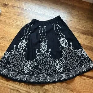 Cold water Creek Embroidered Black and White Skirt