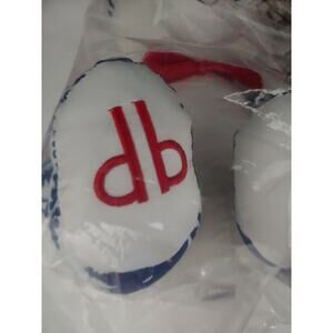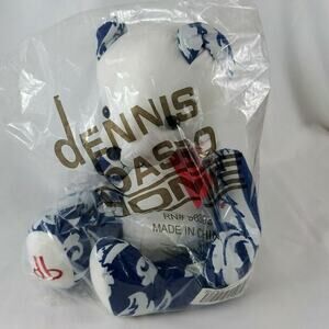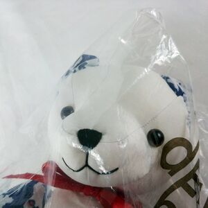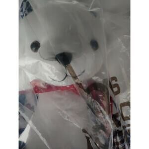 Dennis Basso Home Teddy Bear White, Blue, Red Tapestry print. Red neck bow. 12". New in unopened package.