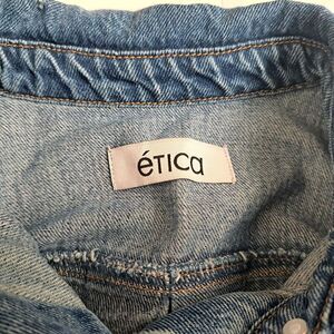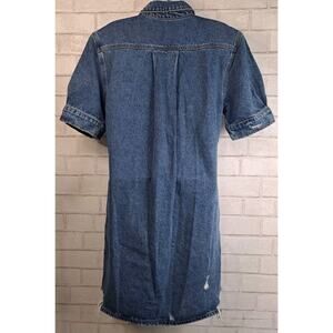Etica Jean Midi Dress Women's Size XS Blue Denim Button Front Distressed