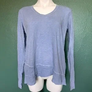 Wilt Made In USA Medium Light Dusty Blue Shirt Long Sleeve Flowy Tiered Top