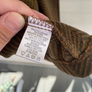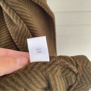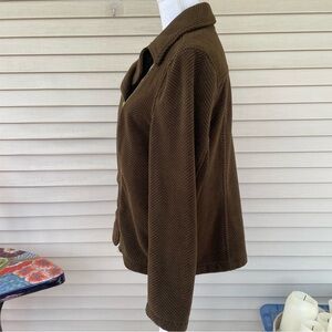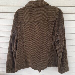 Warm, fleece coat by Isaac Mizrahi Live (by QVC). Charcoal & caramel in a herringbone pattern with an offset gold front zipper.