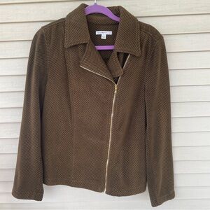 Isaac Mizrahi LIVE Asymmetrical Zip Herringbone Jacket Size L