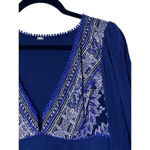 Free People XS Blue V-neck Tunic Mini Dress Sexy Babydoll Flowy Boho Festival
