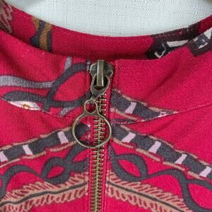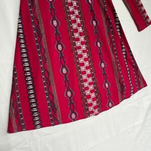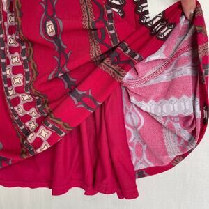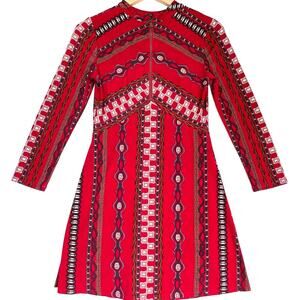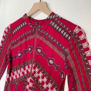 FREE PEOPLE Stella Dress Womens XS Red Bold Print Knit Mini Long Sleeve Boho