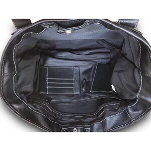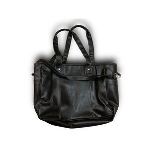 Black Leather Adjustable Shoulder Strap Tote Bag Purse by Leed’s For Hallmark
