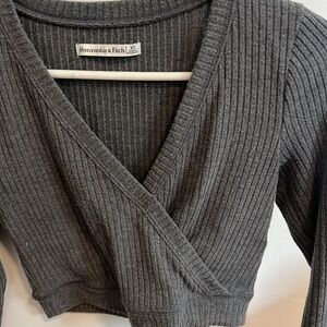 Abercrombie & Fitch gray cropped ribbed long sleeve top with cross over detail, super soft & cute!