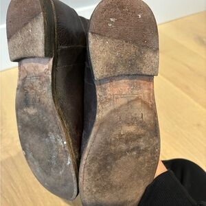 Frye Giovanna boots. Dark brown. Size 6.5. I think with a boot polish they will look brand new again!