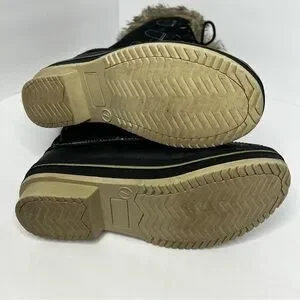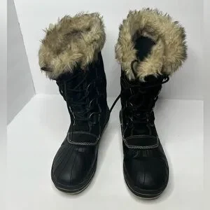 Merona Women's Winter Boots Black Leather Manmade Faux Fur Size 7