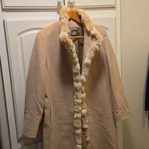 This stunning coat appears New and never worn and, it is in pristine condition!! The size tag has been removed. I purchased as an XL but measurements or more of a Large or 14 they are 22" UA to UA and 44" Shoulder to hem Please make offer or would consider a trade