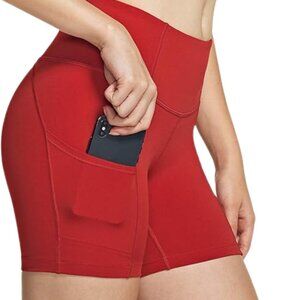 TSLA Cherry Red High Waisted Yoga Shorts Bike Running Pocket Size 2XL