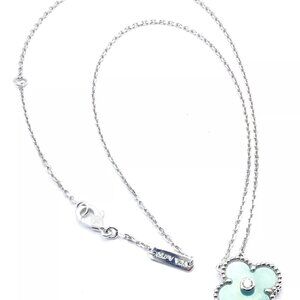 The Van Cleef & Arpels Celadon Sèvres Porcelain Diamond 18k Vintage Alhambra Necklace is a rare and elegant piece.