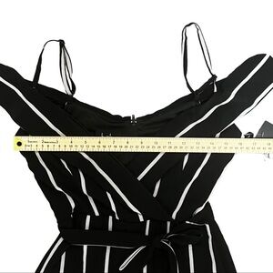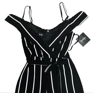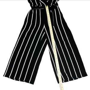 NWT By & By Wide Leg Capri Romper Size 1 Juniors Jumpsuit Striped Black White XS