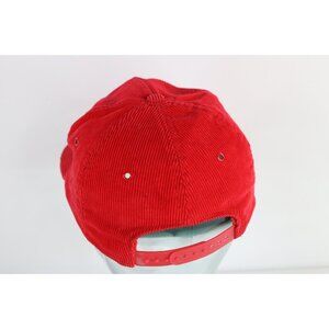 Vintage 90s Streetwear Faded Spell Out Bob Evans Corduroy Snapback Hat Cap Red