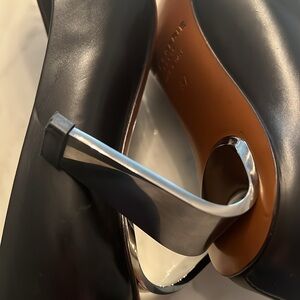 Pre loved, excellent condition, black leather upper, leather lining, leather sole. Metal heel height 3”. Very comfortable.