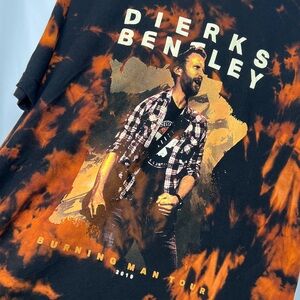 Lightly worn bleach dyed Dierks Bentley 2019 Burning Man Tour concert t-shirt with front and back graphic. Wash with care as bleach dyed clothing may run.