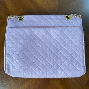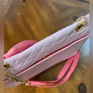 Used, like new kawaii HK crossbody bag with gold link chain strap. No stains, tears or rips. Note: faint indentations along quilted backside from storage. Smoke free home.