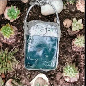 Handcrafted with meticulous attention to detail, this unique necklace features a stunning moss agate pendant encased in intricate metalwork, evoking a vintage charm. The thorny design adds a unique, vintage charm.