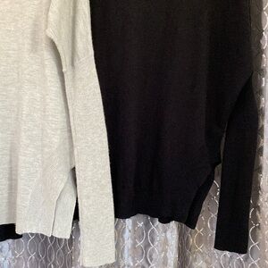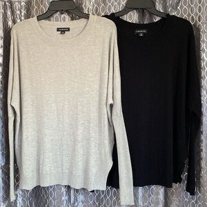 A Set of 2 Trouve Crewneck Long Sleeve Lightweight Sweaters in Black & Beige.