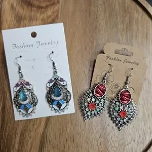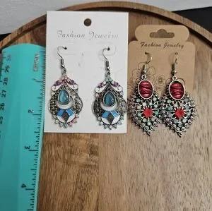 Women's Set of 2 Pairs Pierced Earrings Boho Ethnic Colorful Unique Bohemian New
