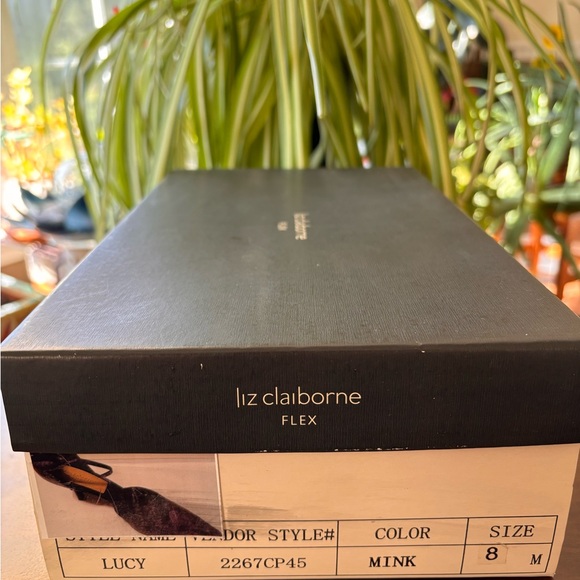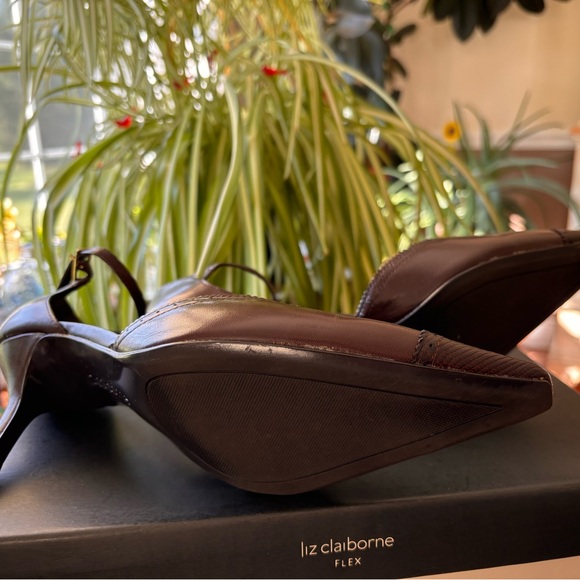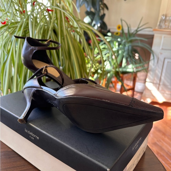 New Liz Clairborne Flex brown leather ankle strap 3” heel pump, size 8M