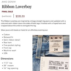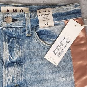 NWT AMO Denim Ribbon Loverboy Jeans 26 Cropped