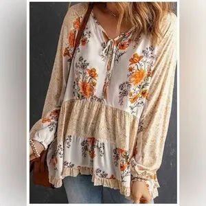 Bohemian White Floral Top Boutique Viscose Long Sleeve Flowy