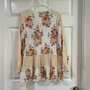 This top is brand new and is a boutique item. It is made of 100% viscose. Very lightweight and soft material. Measurements laying flat - Small - pit to pit 19.5" and length 25.5"; Medium- pit to pit 20.5" and length 26.5"; Large - 21.5" and length 27.5"; XLarge - pit to pit 22.5" and length 28".
