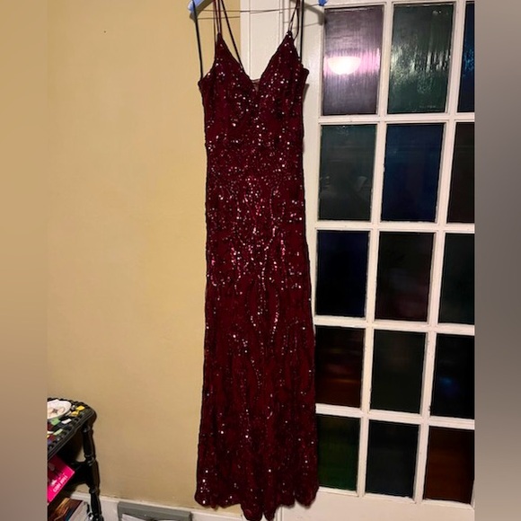 EUC gown measures: Armpit to Armpit is 17 inches and waist to hem is 46 inches. Gorgeous open back. It's from Windsor worn one time. Paid $190 & dry cleaned ($40) Size 13/14 first 2 pics stock photos so style can be seen.