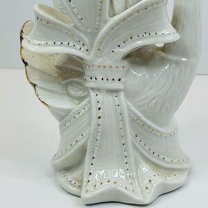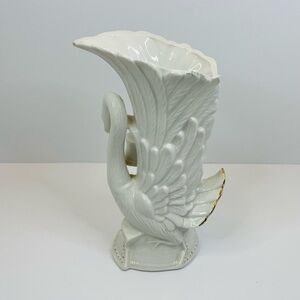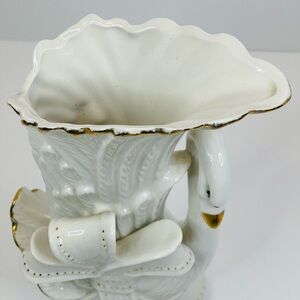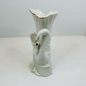 Vintage Ceramic Swan Vase About 9.75” White With Gold Accents