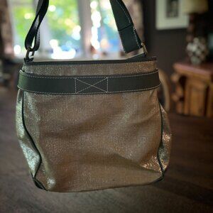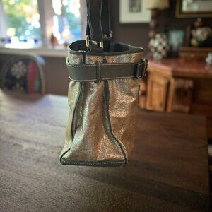 Marc Jacobs metallic fabric hobo handbag. Leather is sage green. Great condition.