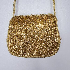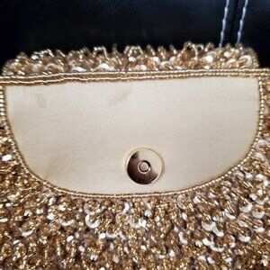 La Regale LTD Vintage Magnetic Close Gold Sequin and Beads Purse