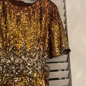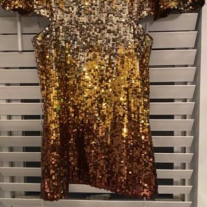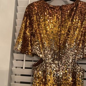 NWT French Connection ombré gold PF estari sequin cut out dress. Size 2.