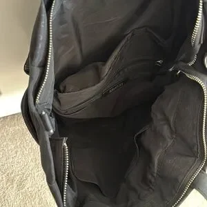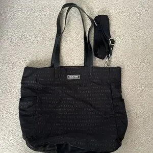 KCR bag- Black, 2 side pockets, inside laptop pocket, inside zipper pocket, 2 inside organization pockets, zipper back side pockets with card slot. Adjustable & detachable shoulder strap. Great work/travel bag. Great condition.