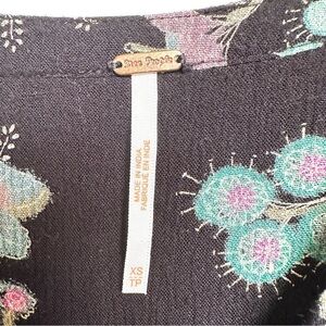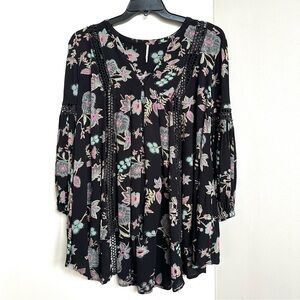 Free People Just the Two of Us Tunic Top Black + Pink Floral Laser Cut Boho