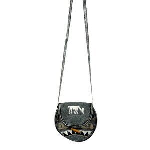 Handmade woolen shoulder bag features a horse design and tribal pattern. Ideal for carrying essentials with an elegant touch.