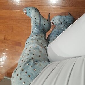 Brand New Denim Studded Boots size 10