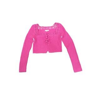 LA Hearts Size Small Amalfi Tied Up Long Sleeve Sweater Pink Cardigan Shrug Ties
