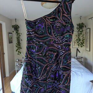 NWT Make a Statement Black Sequin One-Shoulder Bodycon Mini Dress