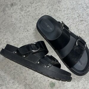 Indigo Black Faux Leather Platform Sandals / Slides - Size 5.5